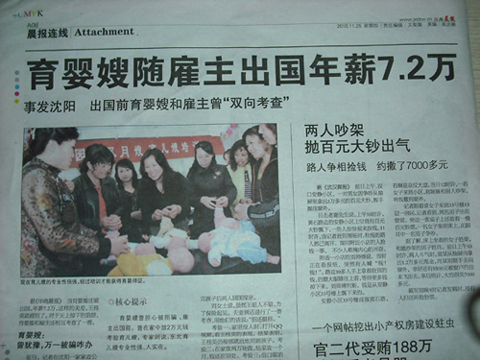 據(jù)【華商晨報】當育嬰嫂還能出國,年薪7.2萬,這樣的美差,王桂英就碰到了。對于天上掉下的餡餅,育嬰嫂和雇主還相互考查”了一番。